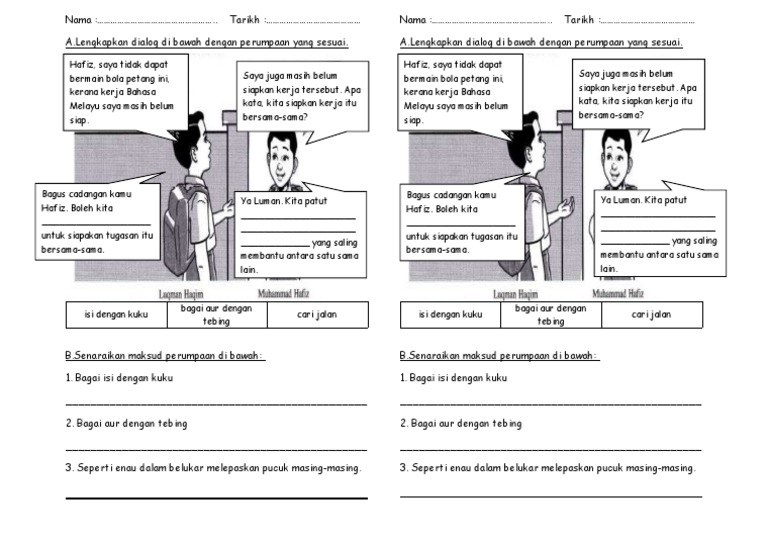 Salah satu contoh penggunaannya dalam kalimat adalah sebaga. Jelaskan maksud peribahasa, bagai buluh ditarik songsang? Bulat air kerana pembetung, bulat kata kerana muafakat 3. Semua peribahasa dengan kata kuku, selalu ada di situs jagokata. Salin semula ayat itu dengan melengkapkan peribahasa tersebut. Bagai cincin dengan permata bagai aur dengan tebing bagai kacang lupakan kulit bagai isi dengan kuku bagai kertas dengan. Ke bukit sama didaki, ke lurah sama dituruni 4. Soalan peribahasa sama maksud ini pernah ditanya dalam peperiksaan sijil pelajaran malaysia (spm). Seseorang yang bersaudara itu tidak akan bergaduh berterusan walaupun berlaku. Pasangan yang sama padan 4. Selain itu, latih tubi peribahasa melayu juga disediakan di laman web ini, pelajar boleh membuat ulang kaji atau percubaan pada contoh soalan dan latihan secara percuma. Peribahasa ini memperkatakan tentang seseorang yang melakukan sesuatu perkara dengan niat lain yang tersembunyi. Bulat air kerana pembetung, bulat kata kerana muafakat 3.