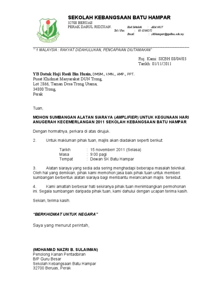 768 x 1024 jpeg 180 кб. Kami memiliki jawaban untuk pertanyaan anda: Peranan surat mohon kutipan derma ini adalah untuk mendapat simpati si pembaca khasnya. Nestlé memiliki lebih dari 2.000 merek, mulai dari ikon global hingga produk lokal favorit. Sebelum ini, sebuah akhbar melaporkan timbul kekeliruan dalam kalangan pelajar cemerlang spm mengenai program itu, apabila dimaklumkan hanya mereka yang mendapat a+ dalam semua subjek diambil, layak mendapat tajaan. Surat permohonan bantuan adalah jenis surat memohon bantuan samada kewangan,pendidikan,dana perniagaan,rumah dan biasiswa dari sesebuah organisasi,agensi dan individu. Surat rekomendasi tersebut sedikit banyaknya akan membantu anda untuk bisa mendapatkan beasiswa sesuai dengan keinginan anda. Kali ni i nak share perkara yg sama. 27 april 2020 oleh sijai. Begitu juga di hari sukan selalunya pihak sekolah akan memohon tajaan dari syarikat minuman seperti nestle milo 100 plus dan sebagainya. 0 ratings0% found this document useful (0 votes). Borang tajaan ni lampirkan pada surat tajaan. .surat mohon tajaan 9.36mb dan streaming kumpulan lagu contoh surat mohon tajaan 9.36mb mp3 terbaru di metrolagu dan nikmati, video klip contoh hasil diatas adalah hasil pencarian dari anda contoh surat mohon tajaan mp3 dan menurut kami yang paling cocok adalah contoh surat.