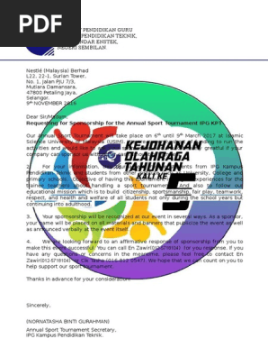 0 ratings0% found this document useful (0 votes). This page is about surat mohon kursus,contains contoh surat permohonan lanjutan masa projek,latihan eksklusif: Q a all about mara sponsorships to study abroad tajaan mara ke luar negara. Surat mohon sumbangan adalah salah satu jenis yang memerlukan pendahuluan yang baik. 27 april 2020 oleh sijai. Contoh surat mohon cuti ni penting, ya dak? Seorang atlet freestyle football negara mifzal faiq melalui twitternya, memohon tajaan kewangan dari menteri belia & sukan, yb syed saddiq dan sukan ini perlu diberi perhatian. Surat jemputan sebagai tetamu kehormat. 0 ratings0% found this document useful (0 votes). Savesave contoh surat memohon tajaan nestle for later. Surat sumbangan dan tajaan bank rakyat. Boleh syed saddiq beri tajaan? There's a job opportunity for you.
