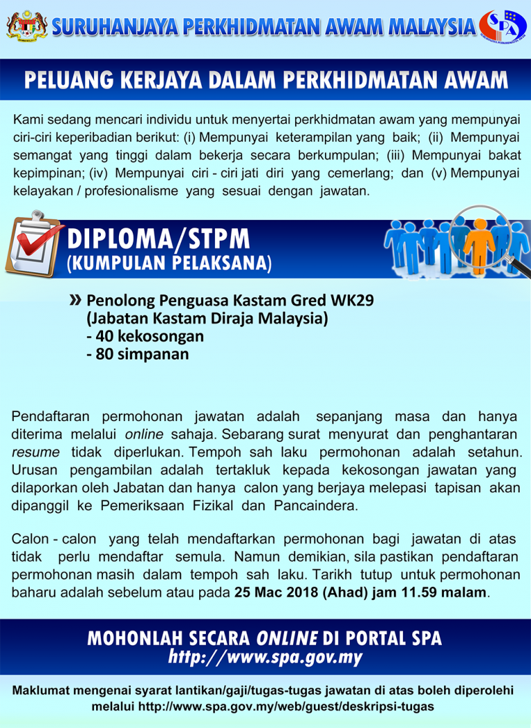 Related : Penolong Penguasa Kastam Gred Wk29 / Nama / jawatan & gred..